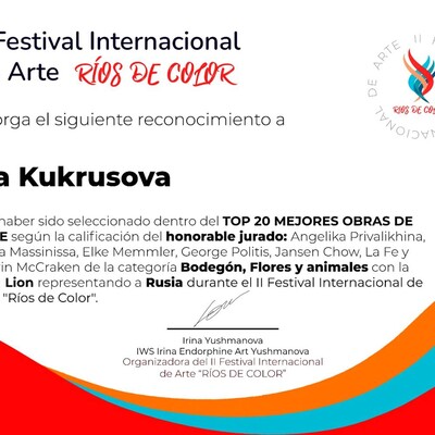 - Полуфиналист крупнейшего конкурса реалистичного искусства 17th International ARC Salon (более 5000 участников)
