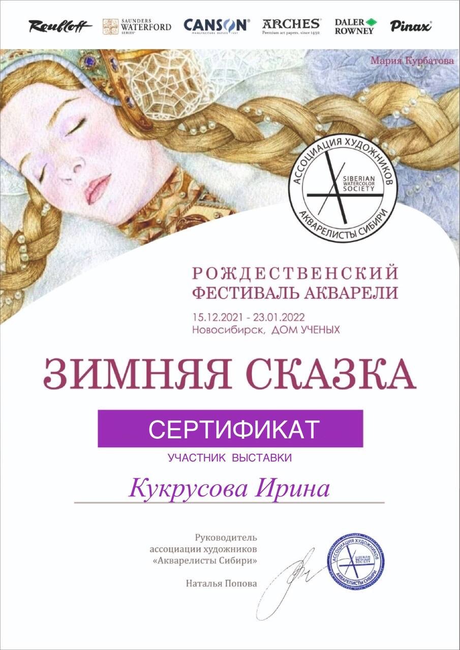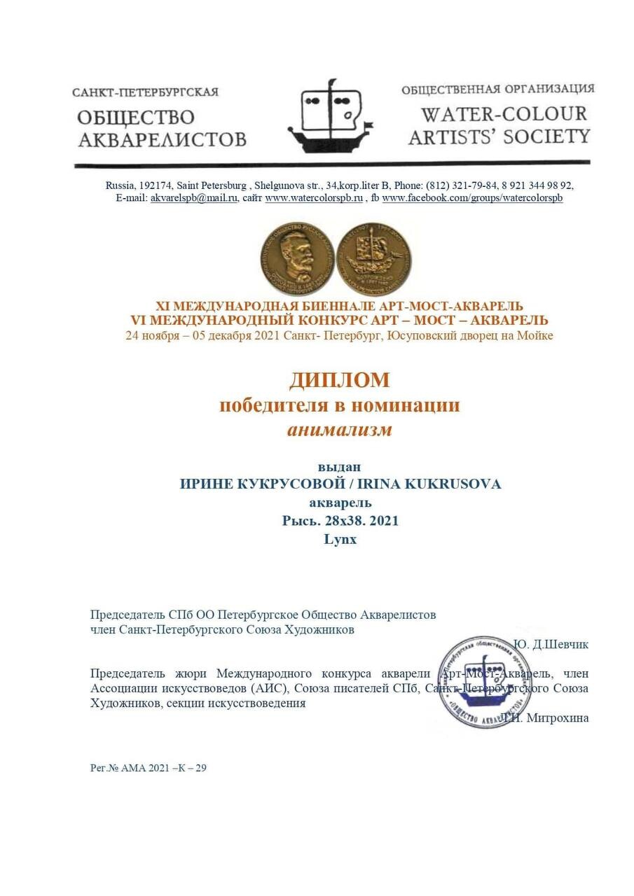- Призёр выставки акварели в г. Новосибирск