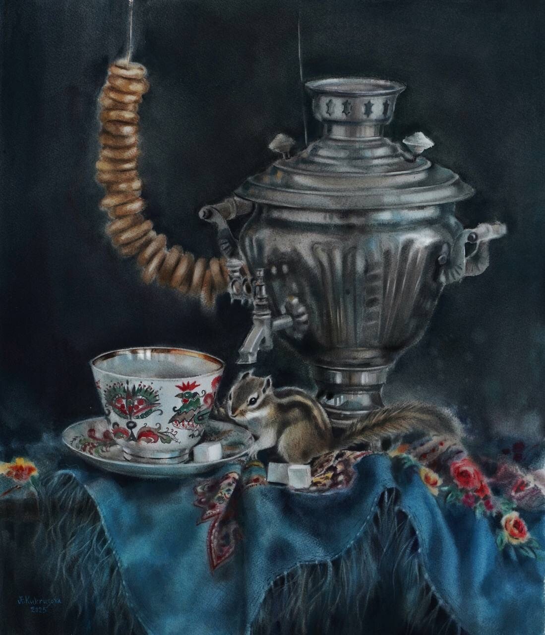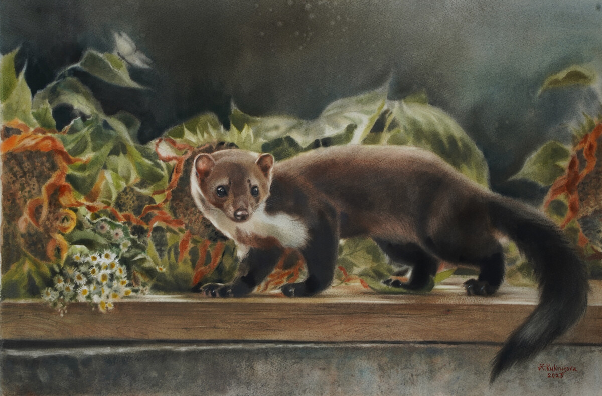 - Работает в техниках — сухая пастель и акварель Алла прима, гуашь.